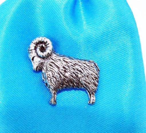 Beautifully detailed, hand crafted Airies the ram zodiac pin badge, complete with attractive, satin drawstring gift pouch. Ideal birthday gift for Arians and Derby County fans.